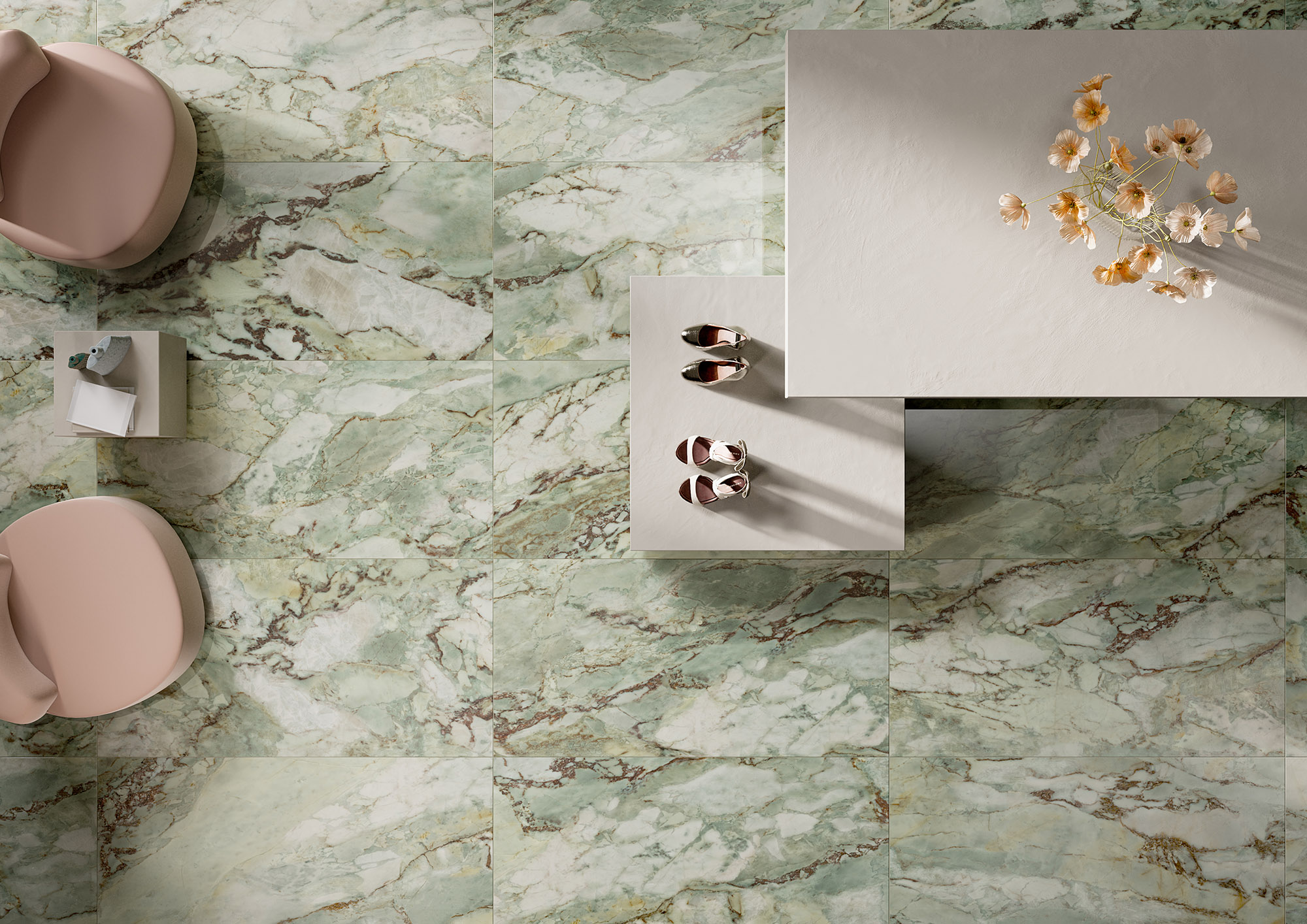 Die Green Sky Marmor-Effekt Feinsteinzeug-Serie ist die ideale Wahl für diejenigen, die ein majestätisches Design voller Charakter suchen.