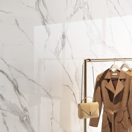 Die Perfektion des weißen Marmors aus Feinsteinzeug, für kompromisslos luxuriöse Räume