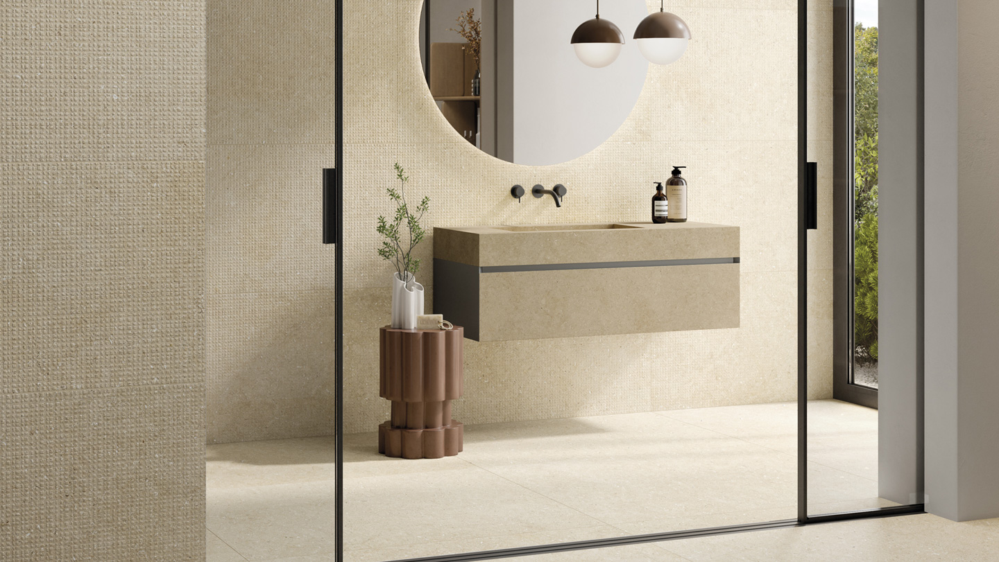 Aus planerischer Sicht ermöglichen Großformate eine durchgängige Gestaltung von Böden, Wandverkleidungen und Möbelflächen. Dieser Ansatz eröffnet den Weg zu integrierten Projekten, bei denen derselbe ästhetische Effekt auf Wänden, Böden und Badmöbeln fortgeführt wird und eine kohärente, elegante Designsprache entsteht.