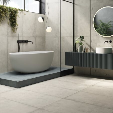 Un grès cérame effet ciment d’aspect doux et crayeux